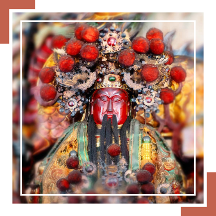 關聖帝君 奉祀於:「正殿右龕」 農曆六月廿四日聖誕 關羽字雲長,本字長生,司隸河東解良人(今山西省運城市),約生於東漢桓帝延熹3 年(160)農曆六月廿四日誕辰。道教尊稱關聖帝君又稱協天大帝、文衡聖帝,關帝爺、帝君爺,關公、恩主公、恩主等,佛教稱為伽藍,即護法神之意。關聖帝君也是多種行業的行業神,包括讀書人的文昌神、軍警的戰神、商人的財神,乃至幫會的主神。在臺灣,關聖帝君近年來還被某些團體昇格為玉皇大帝,受原來玉帝的禪讓成為天公。關聖帝君是華人世界裡相當普遍的神祇。